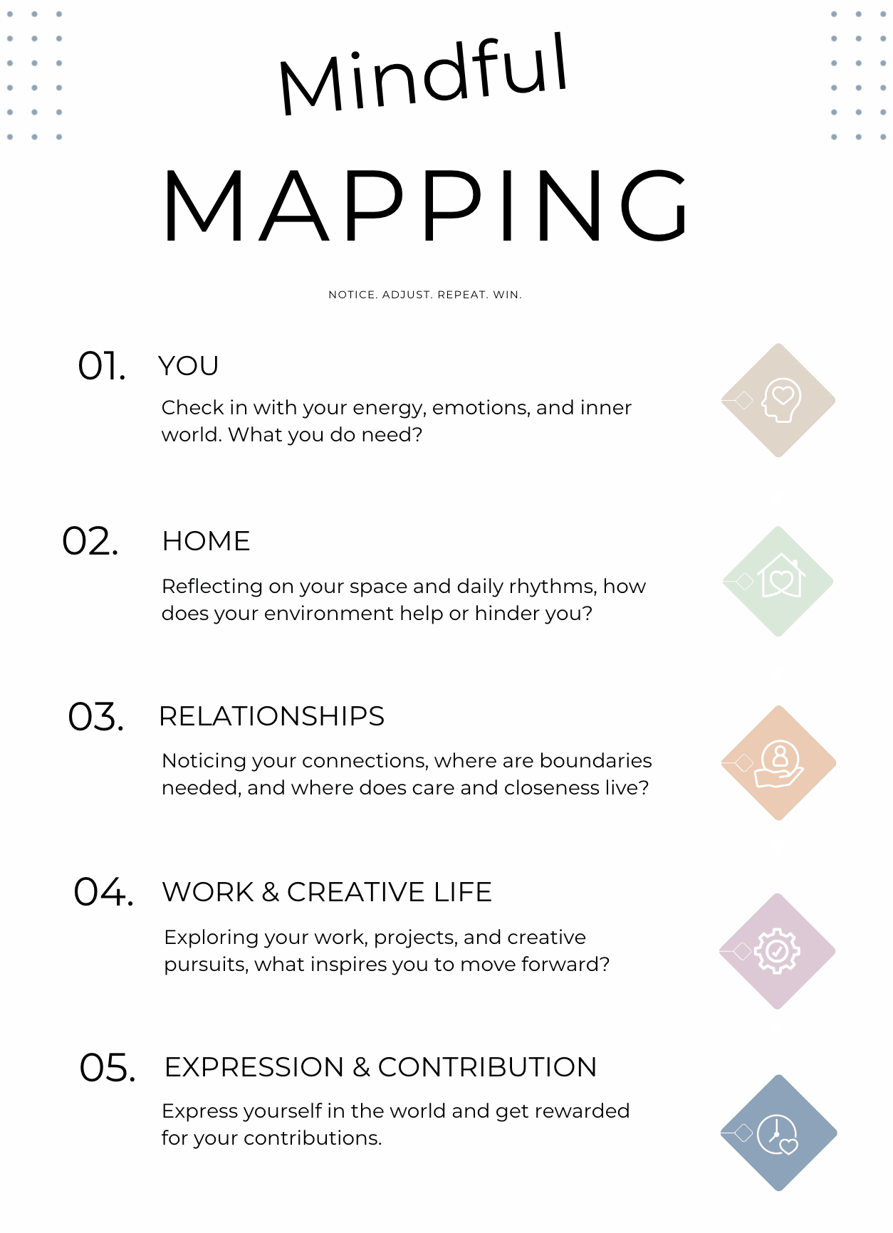 Mindful Mapping is a weekly reflection routine, specifically designed to help you steer your ship in the right direction without overwhelm or self-sacrifice.